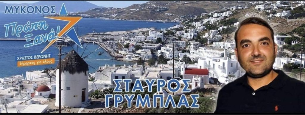 Mykonos Mayoral Election – Σταύρος Γρύμπλας / Οι Μυκονιάτες αναζητούν το νέο όραμα και τις νέες απαντήσεις που θα δημιουργήσουν την σωστή κατεύθυνση και θα επιδράσουν γρήγορα στην επανάκαμψη της Μυκόνου, αναφέρει σε ανάρτησή του στο Facebook, ο υποψήφιος Δημοτικός Σύμβουλος με τον Συνδυασμό «Μύκονος Πρώτη Ξανά» του Χρήστου Βερώνη, Σταύρος Γρύμπλας.