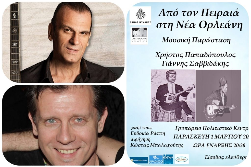 Η Μουσική παράσταση: «Από τον Πειραιά στη Νέα Ορλεάνη» με Χρήστο Παπαδόπουλο και Γιάννη Σαββιδάκη, σήμερα στο Γρυπάρειο Πολιτιστικό Κέντρο
