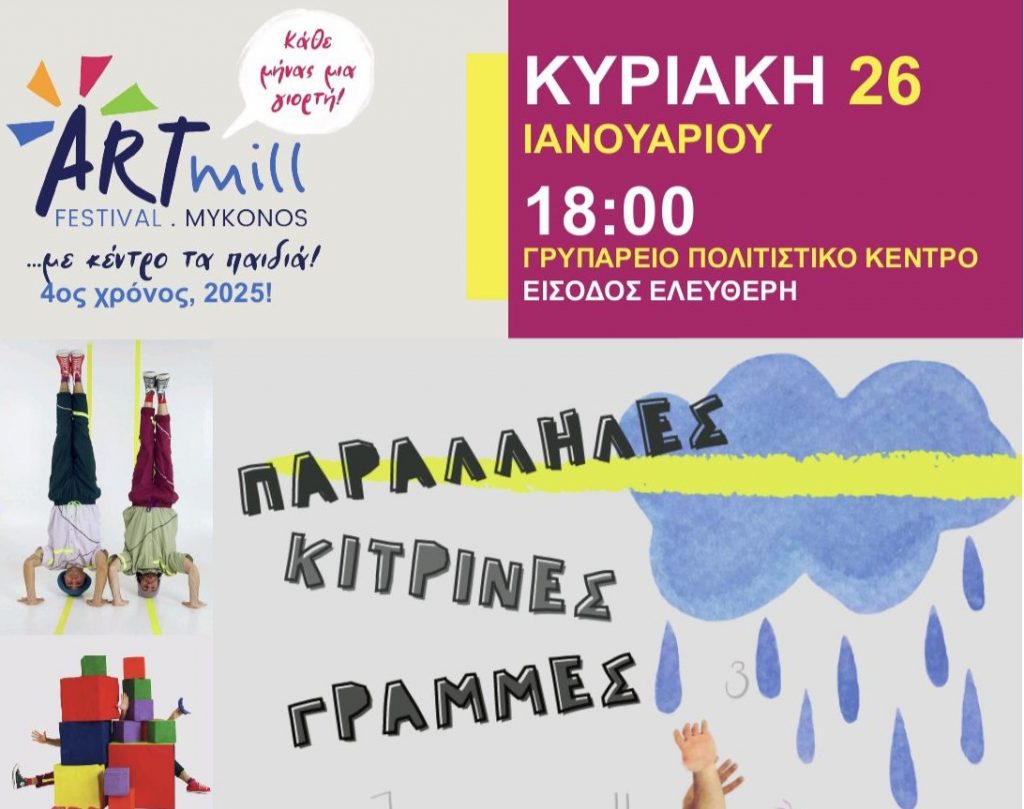 Το πρόγραμμα των παραστατικών τεχνών του «ARTmill festival» με την διαδραστική επίδρασή τους, είναι αφιερωμένο στην διαπαιδαγώγηση και στην ψυχαγωγία των παιδιών και των νέων της Μυκόνου.