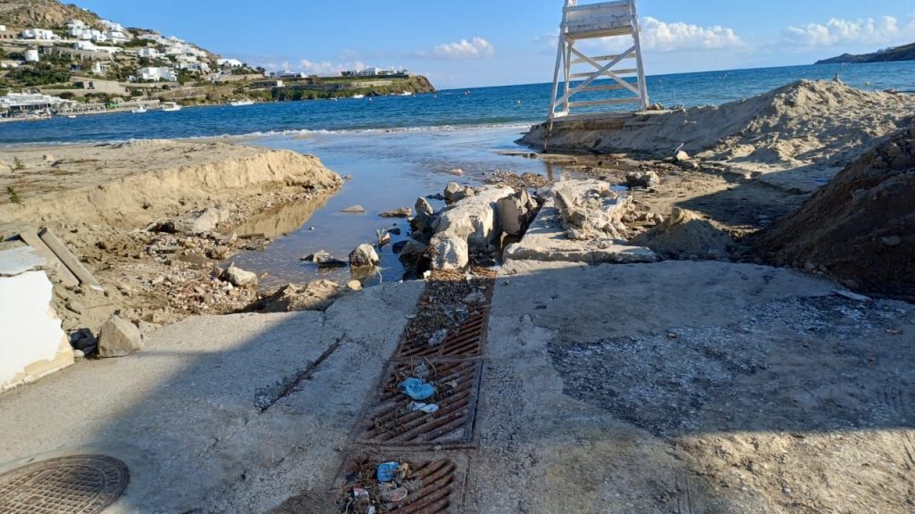 Ακολουθεί η ανάρτηση: “Πολιτική Προστασία Δήμου Μυκόνου Είχε προλάβει ο εντεταλμένος σύμβουλος Μανώλης Κουσαθανάς κ δύο μέρες πριν, είχε ανοίξει στο Ορνό τη δίοδο προς την θάλασσα, διαφορετικά η ζημιά θα ήταν πολύ μεγαλύτερη στην ευρύτερη περιοχή».