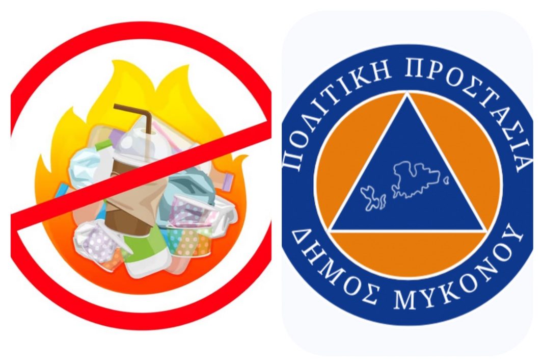 Ο Εντεταλμένος Σύμβουλος Πολιτικής Προστασίας του Δήμου Μυκόνου, Μανώλης Κουσαθανάς, μέσω Facebook υπενθυμίζει ότι, σύμφωνα με την υπ’αριθμ. 21545/οικ.Φ.700.9/2024 (ΦΕΚ 2387/Β/2024) Υπουργική Απόφαση με την οποία εγκρίθηκε η υπ’αριθμ. 9/2024 Πυροσβεστική Διάταξη ΄΄Καθορισμός μέτρων και μέσων για την πρόληψη και αποφυγή εκδήλωσης πυρκαγιών σε δάση, δασικές, χορτολιβαδικές και αγροτικές εκτάσεις, πάρκα και άλση πόλεων και οικιστικών περιοχών κλπ΄ΑΠΑΓΟΡΕΥΕΤΑΙ καθ’ όλη τη διάρκεια του χρόνου η καύση απορριμμάτων, αποβλήτων, άχρηστων ή ογκωδών αντικειμένων, πλαστικών κλπ.
