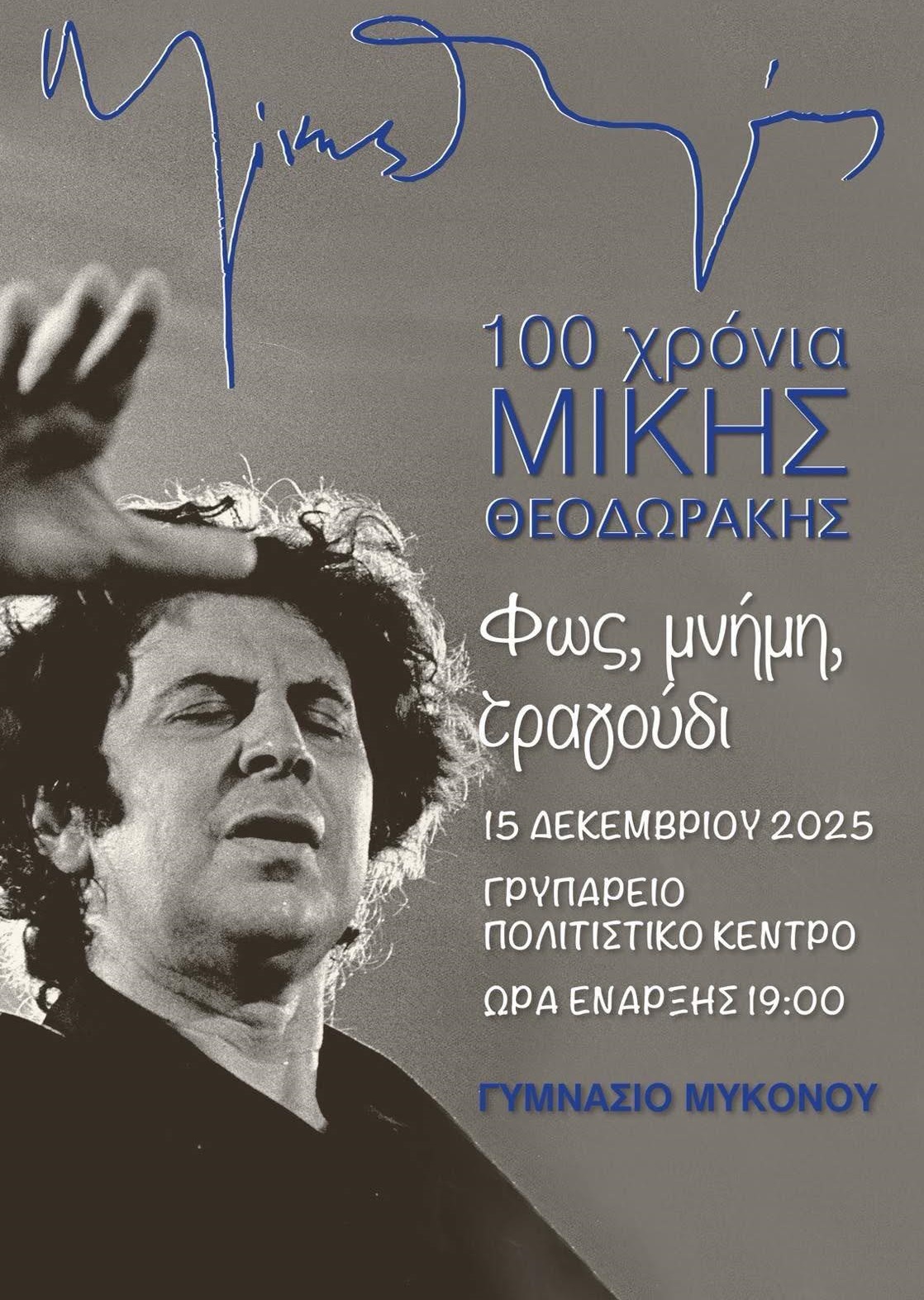 Μια ξεχωριστή βραδιά πολιτισμού διοργανώνει το Γυμνάσιο Μυκόνου, με μελωδίες του οικουμενικού Έλληνα Μίκη Θεοδωράκη